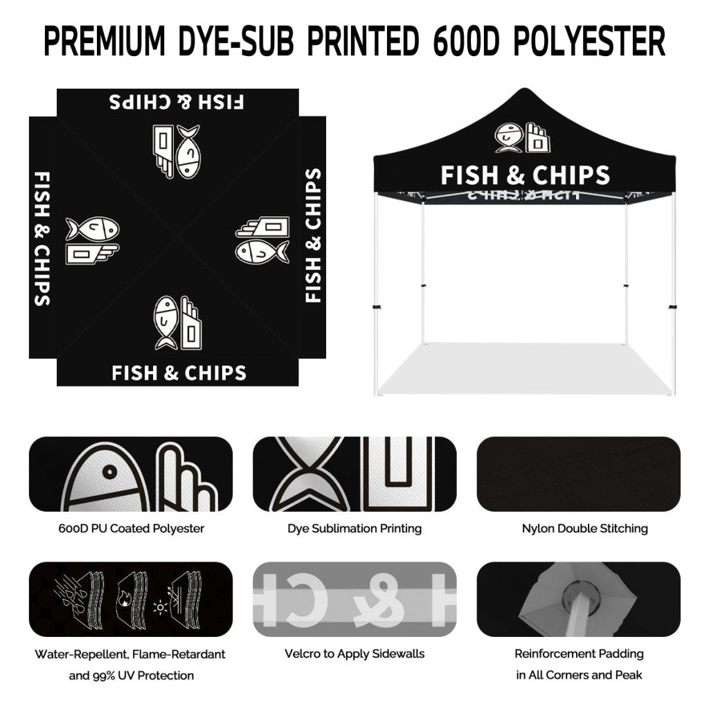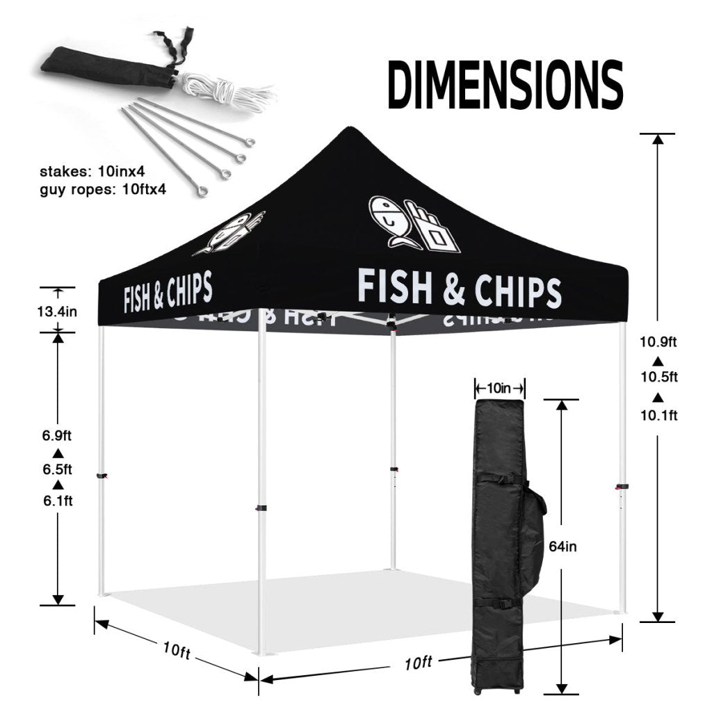 Food Tent Covers-Fish & Chips 10x10 Pop Up Canopy Tent