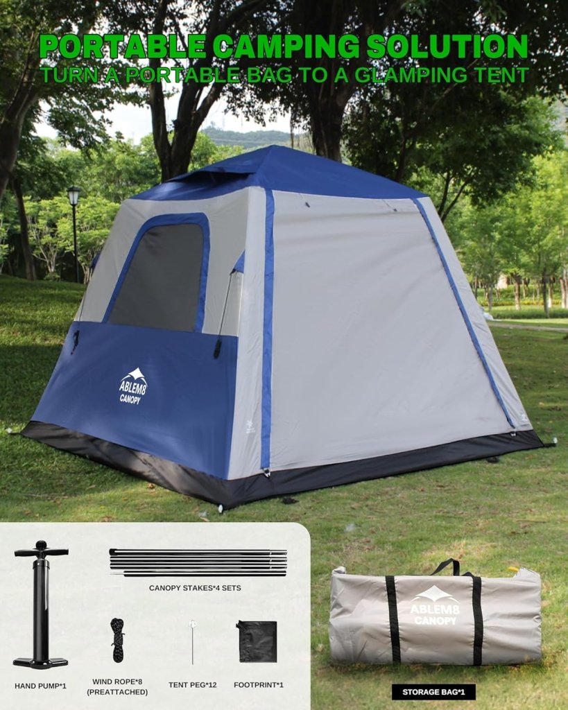 Inflatable Tent for Camping, 8.2x8.2FT Large 4-6 Person Blow up Tent with 2 Doors and 4 Screen Mesh Panels, Footprint Included(Sapphire & Light Gray)