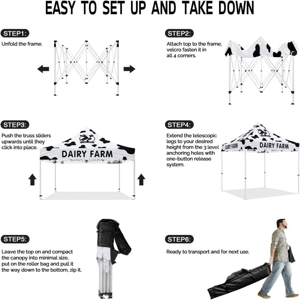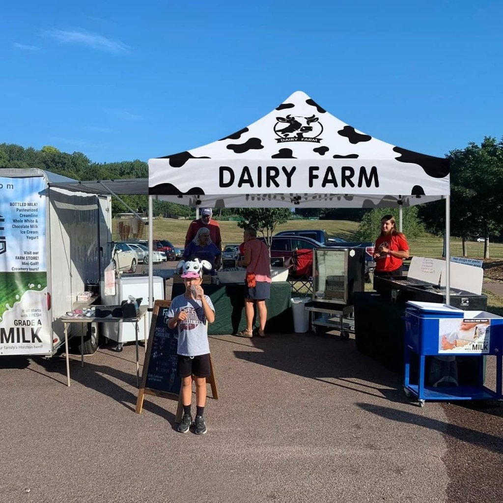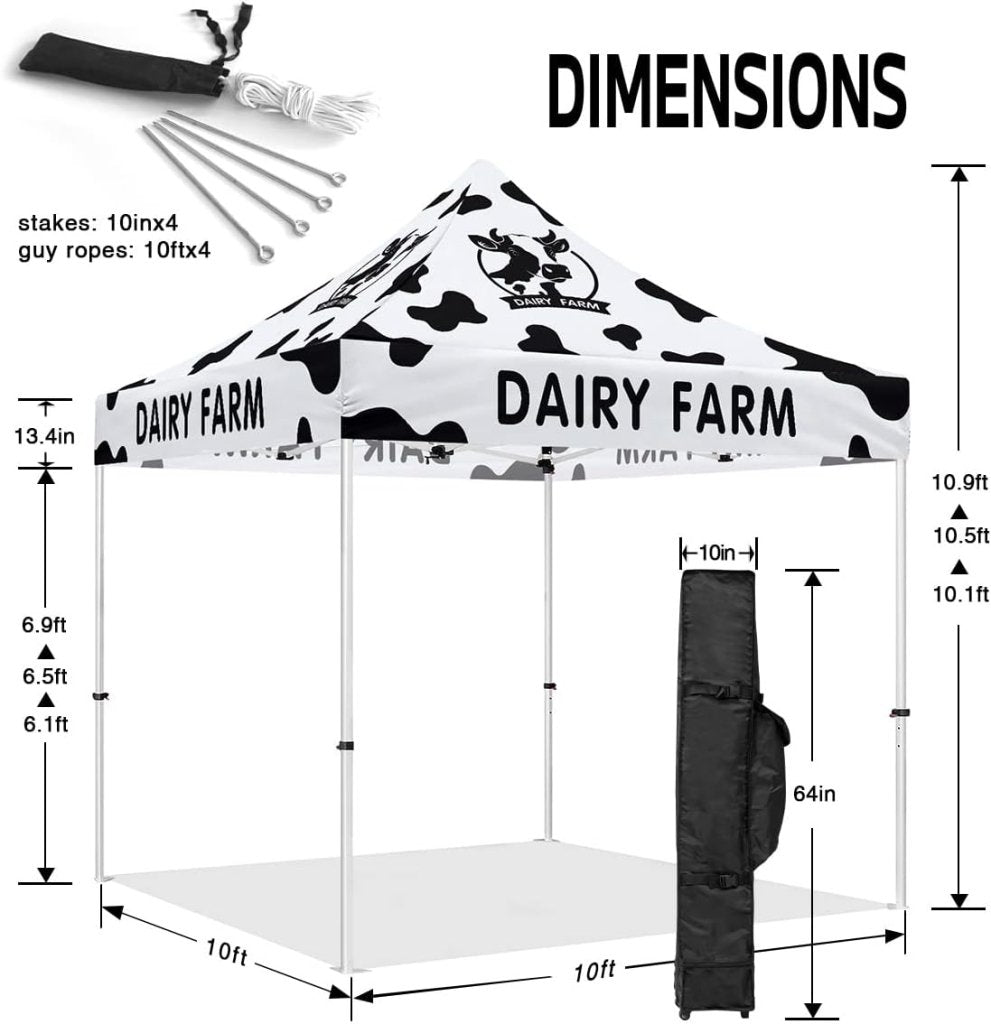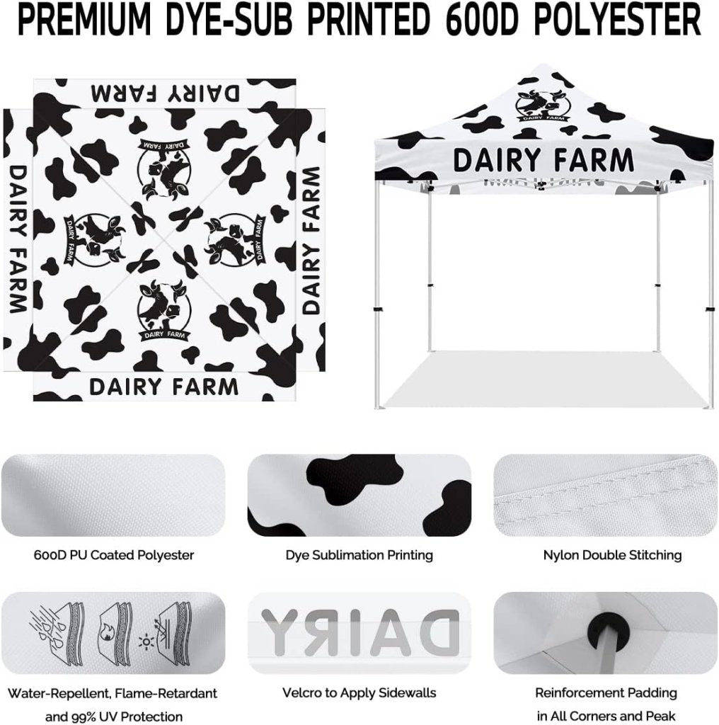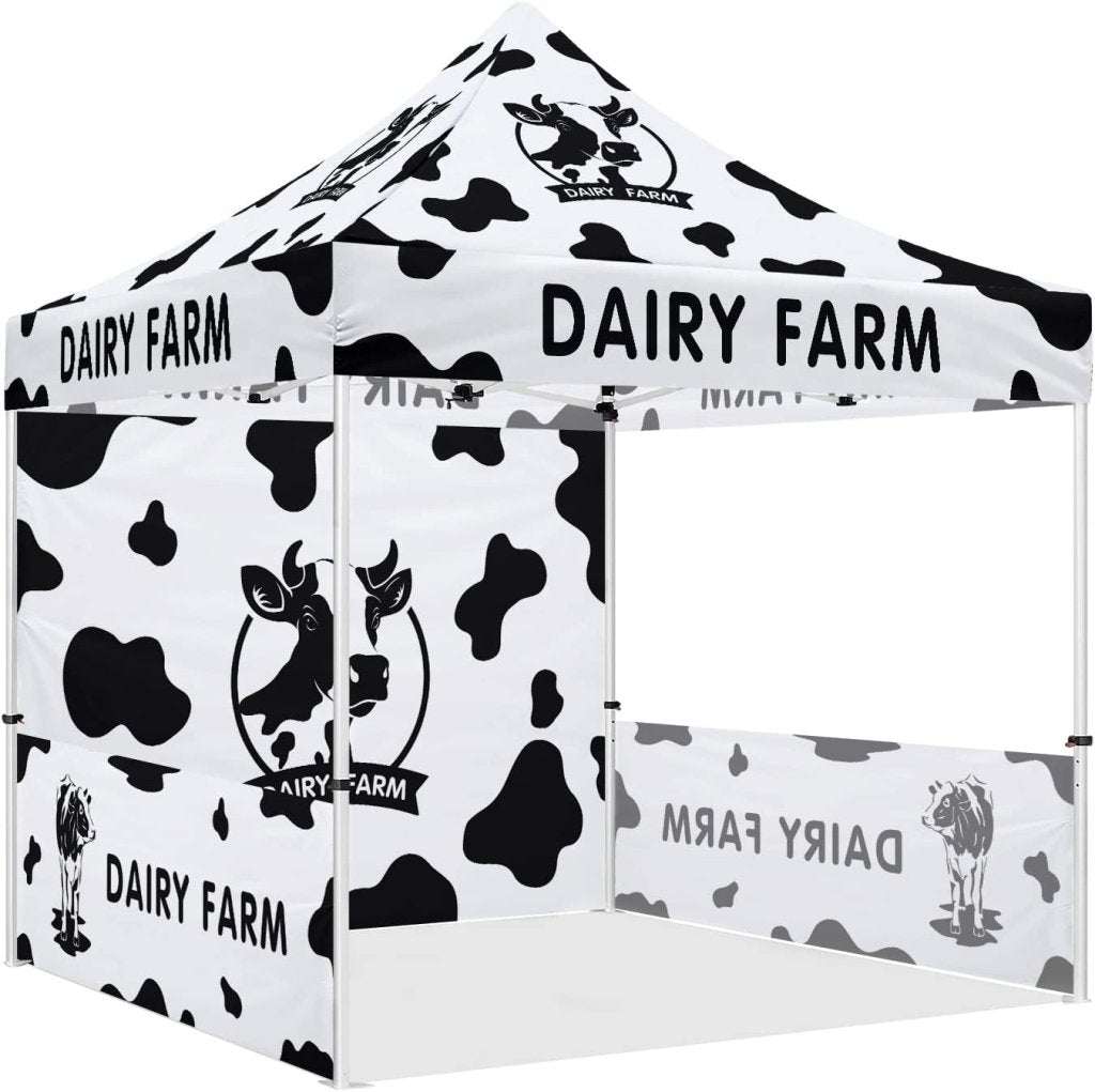 Milk Tent 10x10 Themed Pop Up Canopy Tent for Fresh Milk and Cheese Dairy Farm
